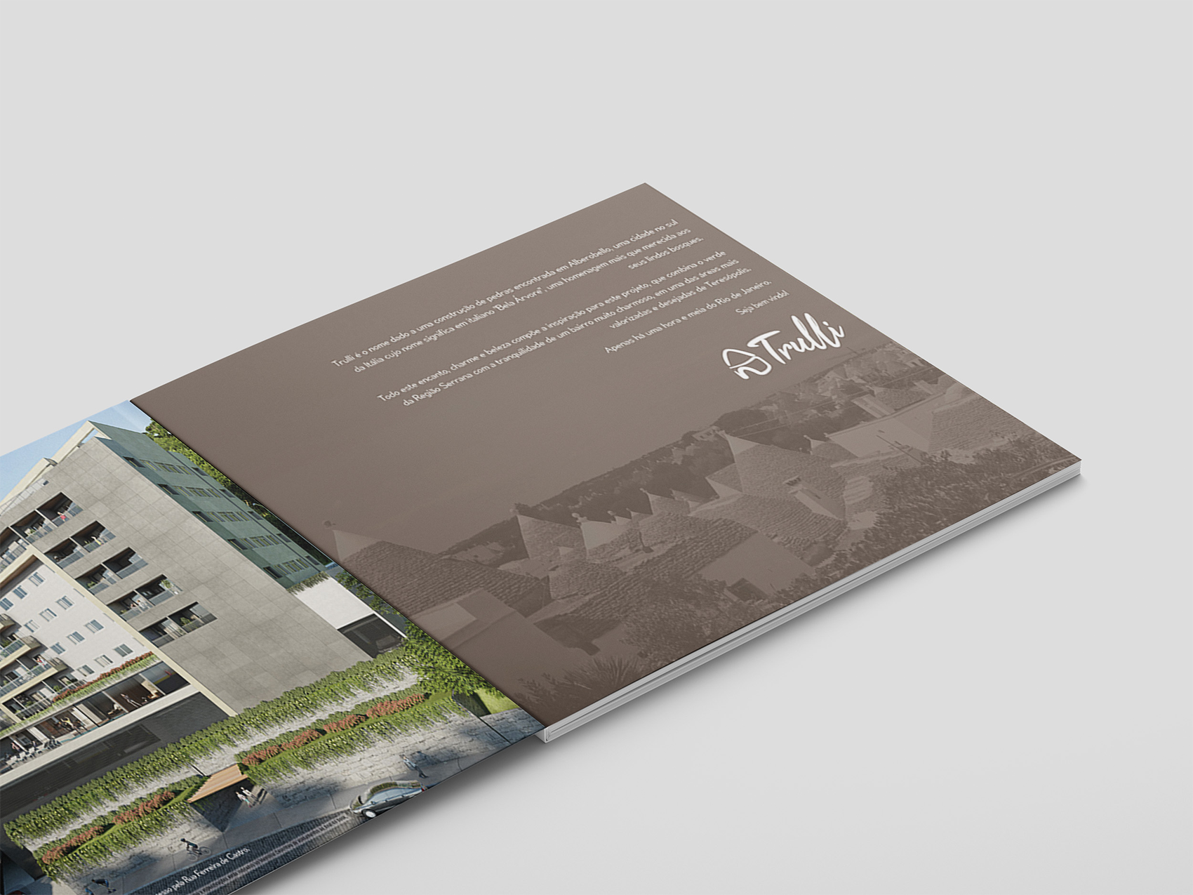 Criação de identidade visual e campanha para lançamento de empreendimento imobiliário Residencial Trulli, contemplando book, folheteria, hotsite e decoração temática para stand. Projeto desenvolvido pela Agência Dóczy para a Construtora Mauad.