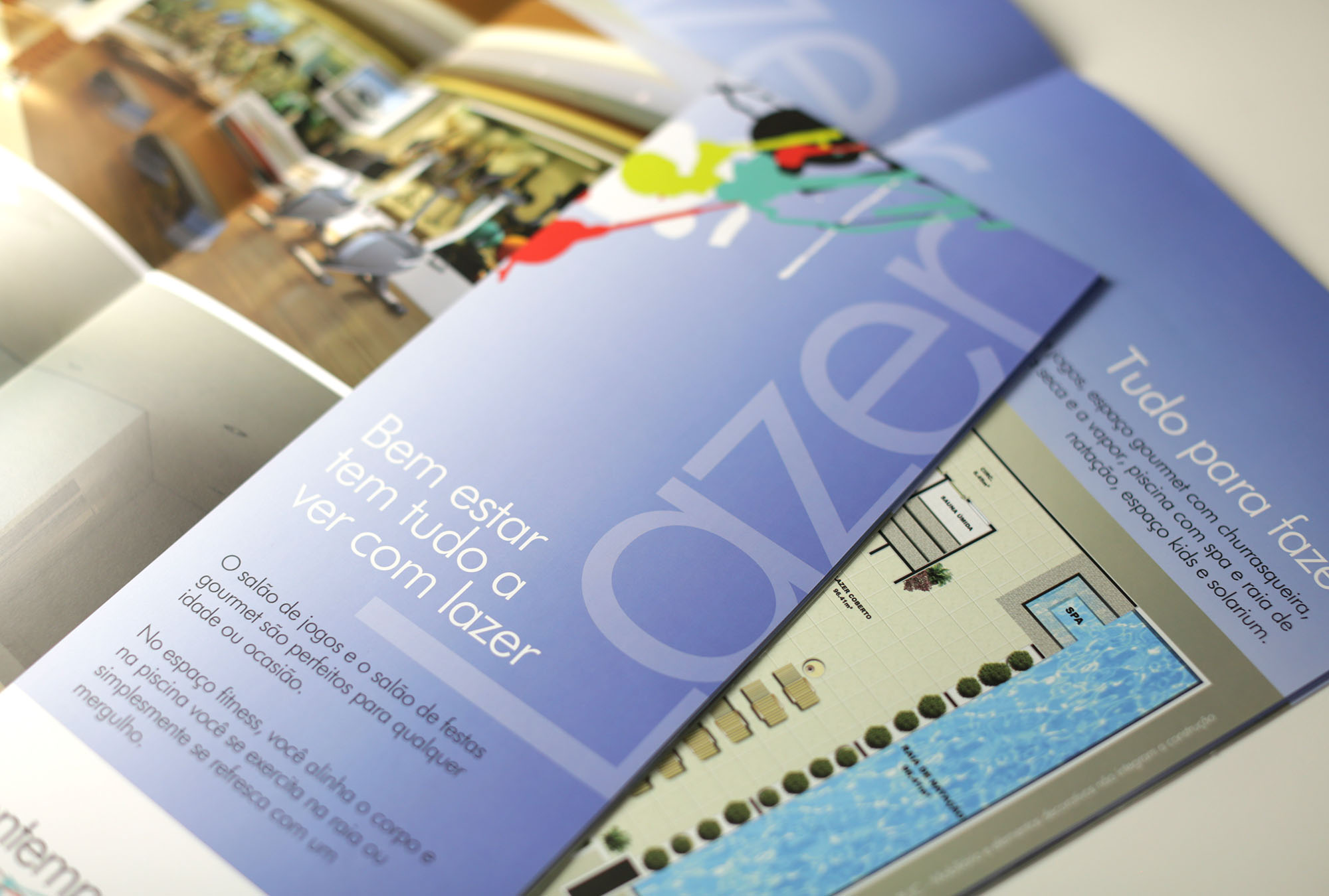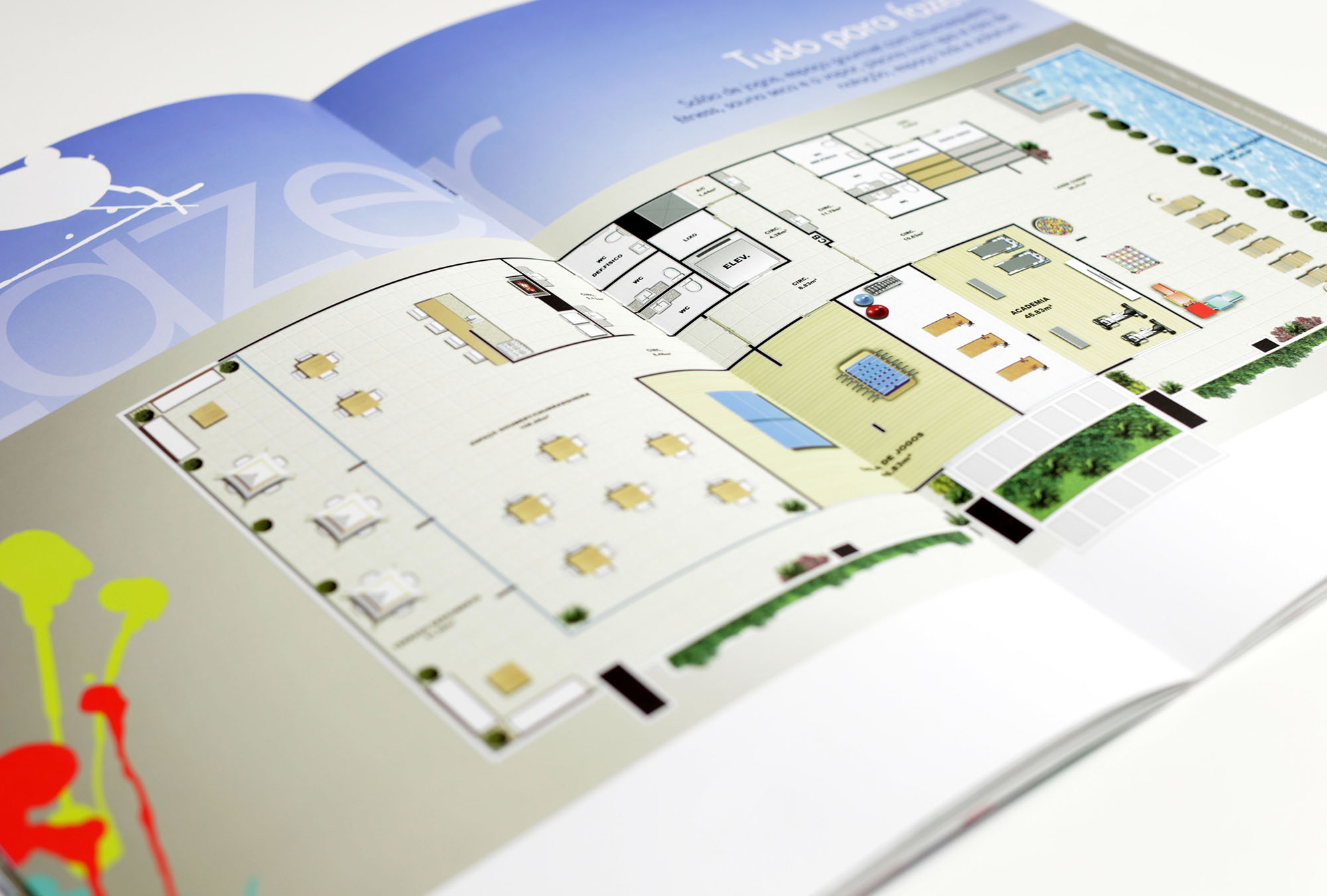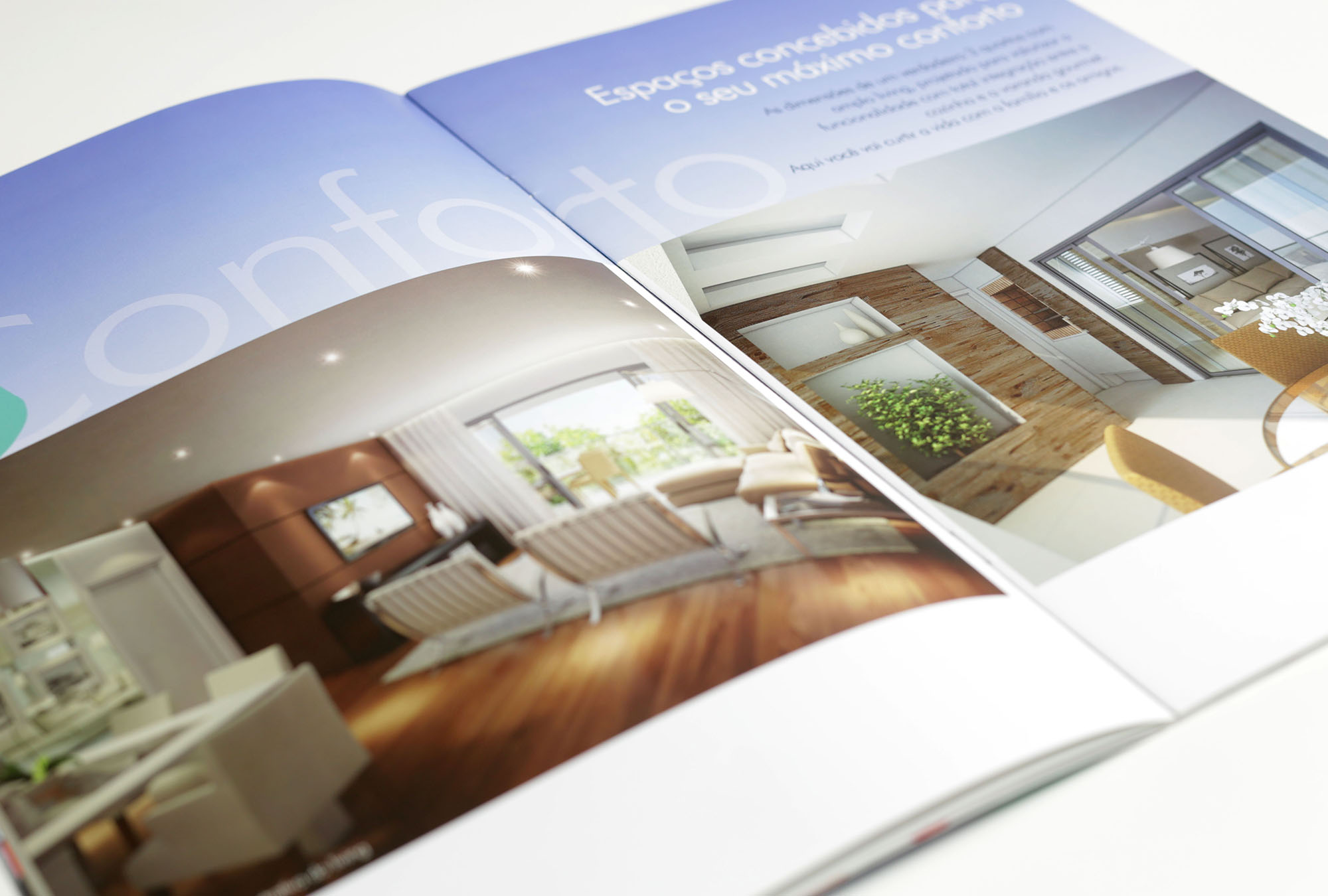 Criação de identidade visual e campanha para lançamento de empreendimento imobiliário residencial Contemporâneo, contemplando book, folheteria, hotsite, decoração temática para stand e sinalização direcional.