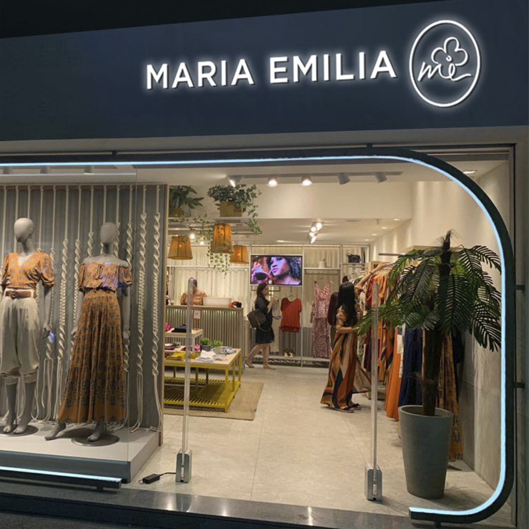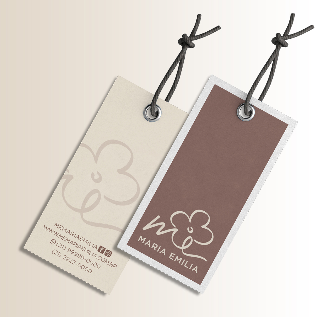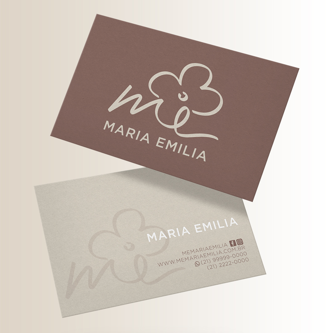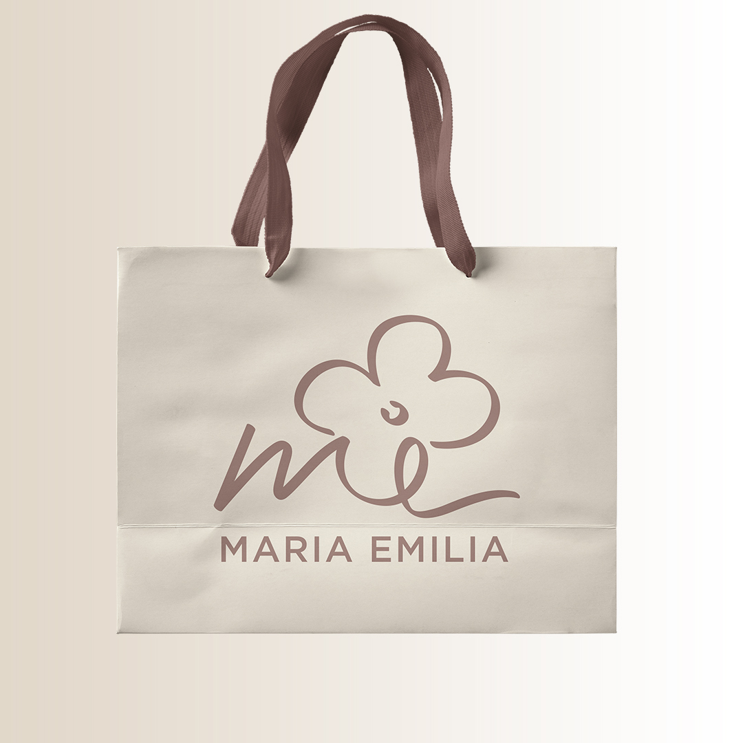 Reformulação de marca Maria Emilia. Projeto de modernização sem a descaracterização da logo original e com detalhamento das aplicações primárias da mesma.