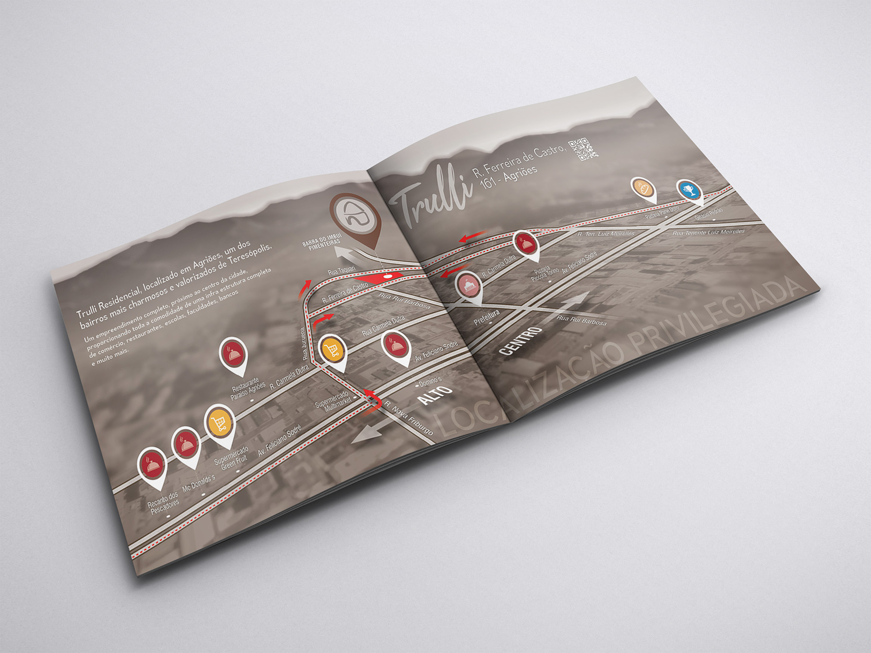 Criação de identidade visual e campanha para lançamento de empreendimento imobiliário Residencial Trulli, contemplando book, folheteria, hotsite e decoração temática para stand. Projeto desenvolvido pela Agência Dóczy para a Construtora Mauad.